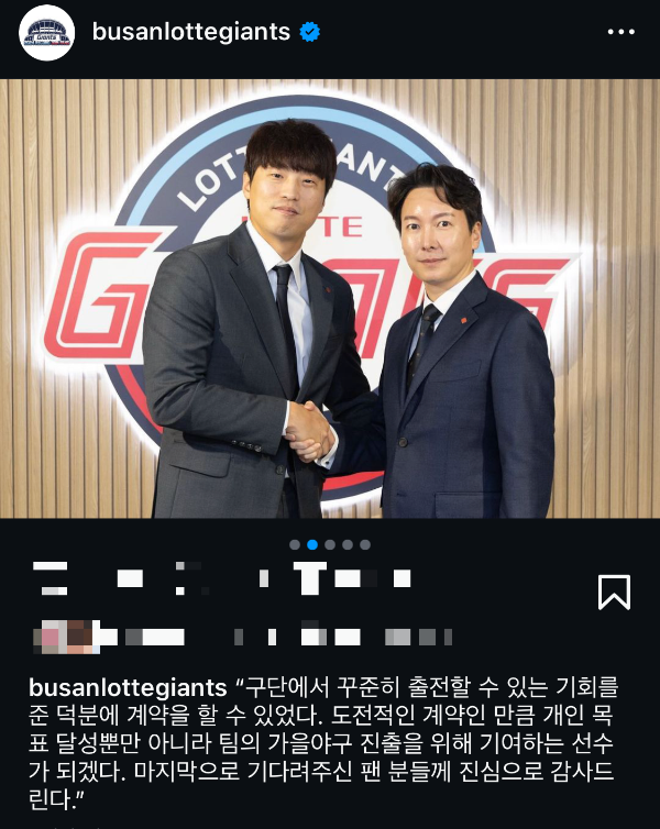 원소속팀인 롯데 자이언츠와 FA 계약을 맺었습니다.
